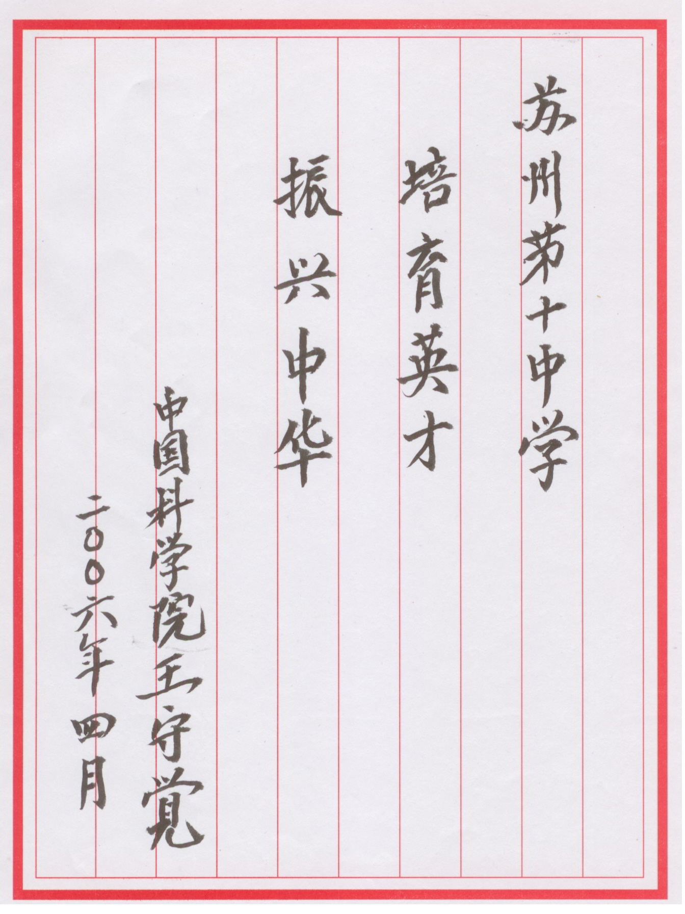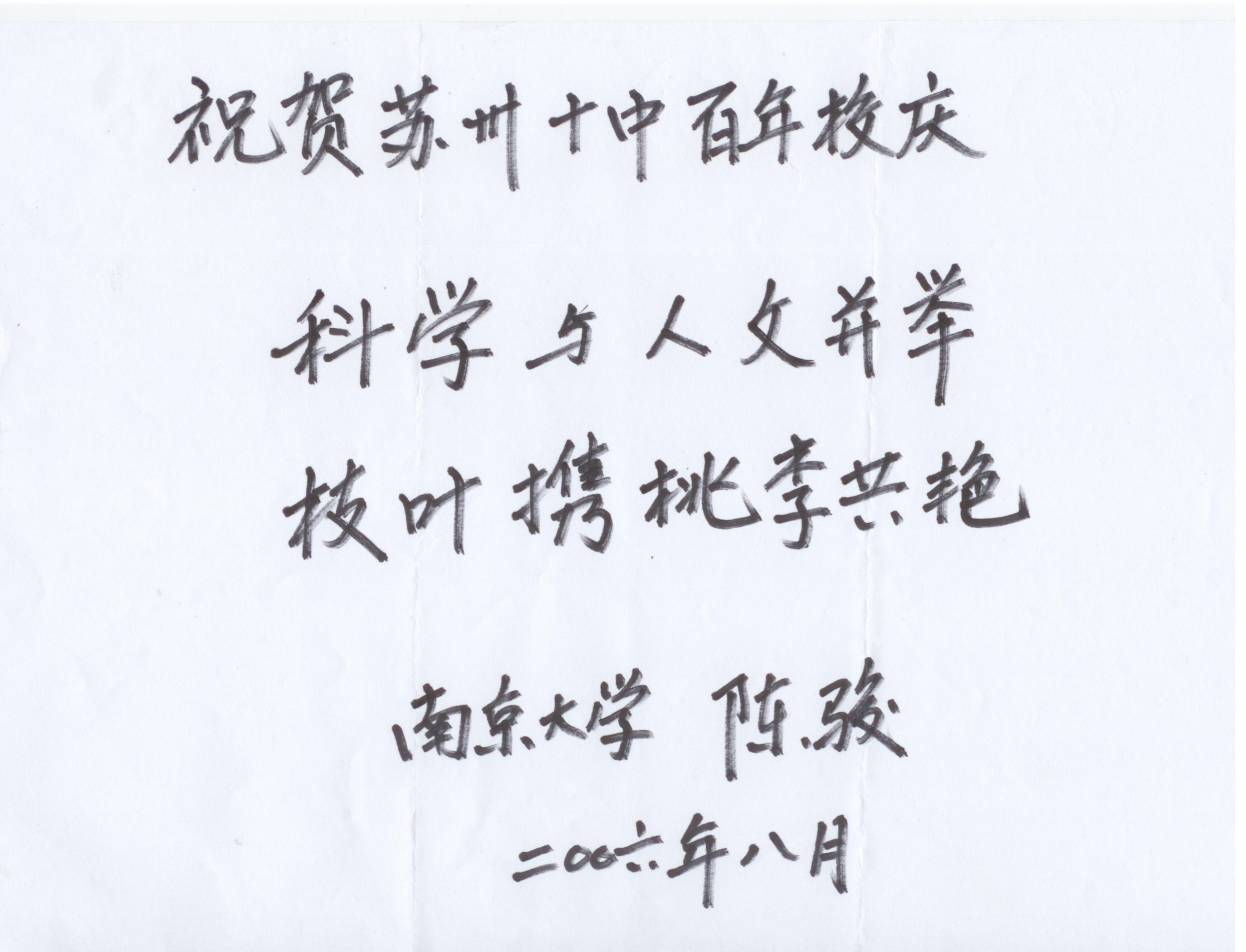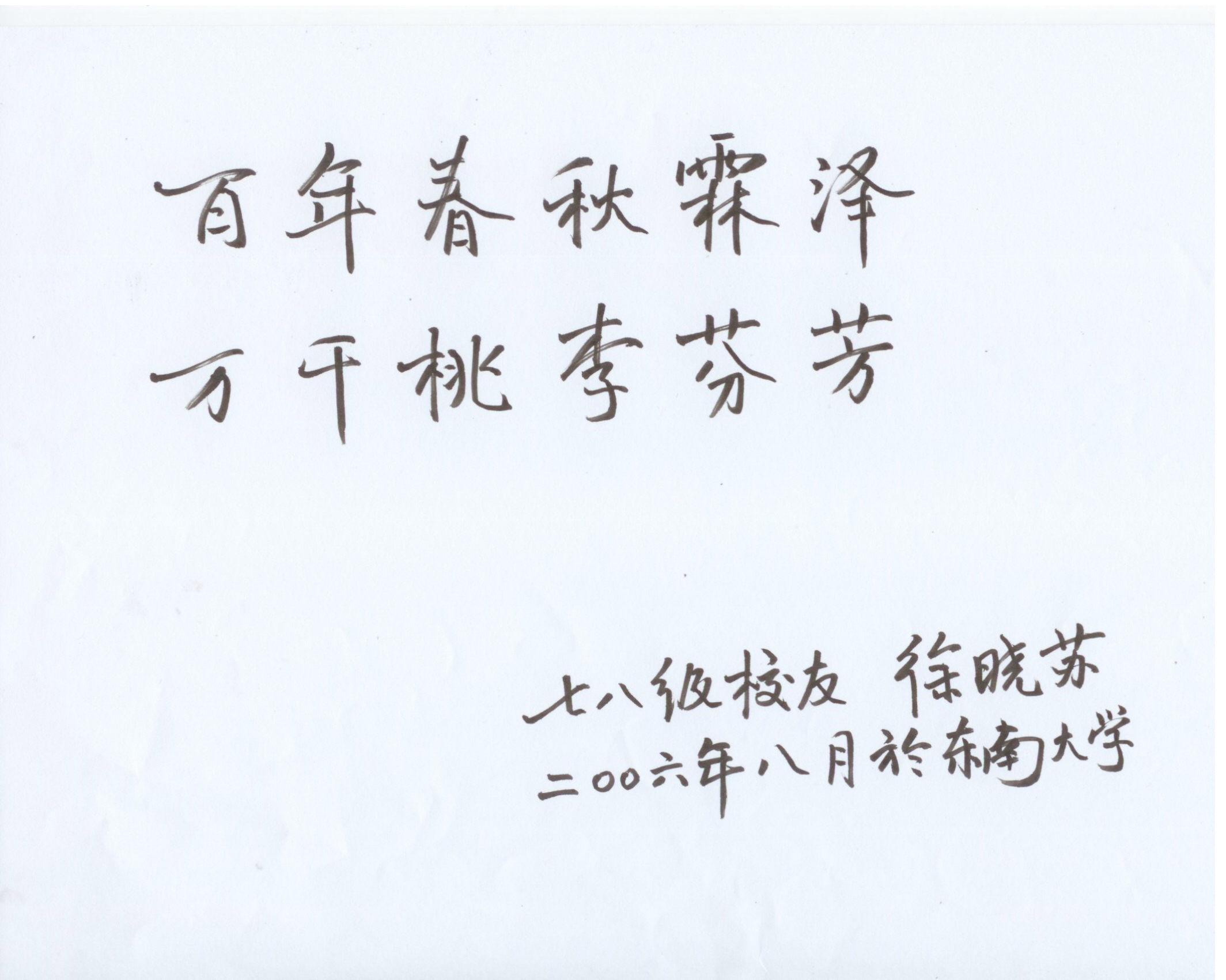 校友东南大学教授江苏省十杰青年徐晓苏的题词