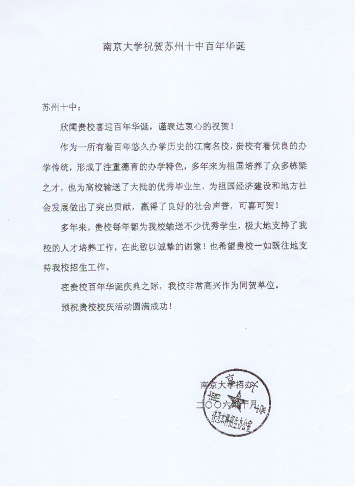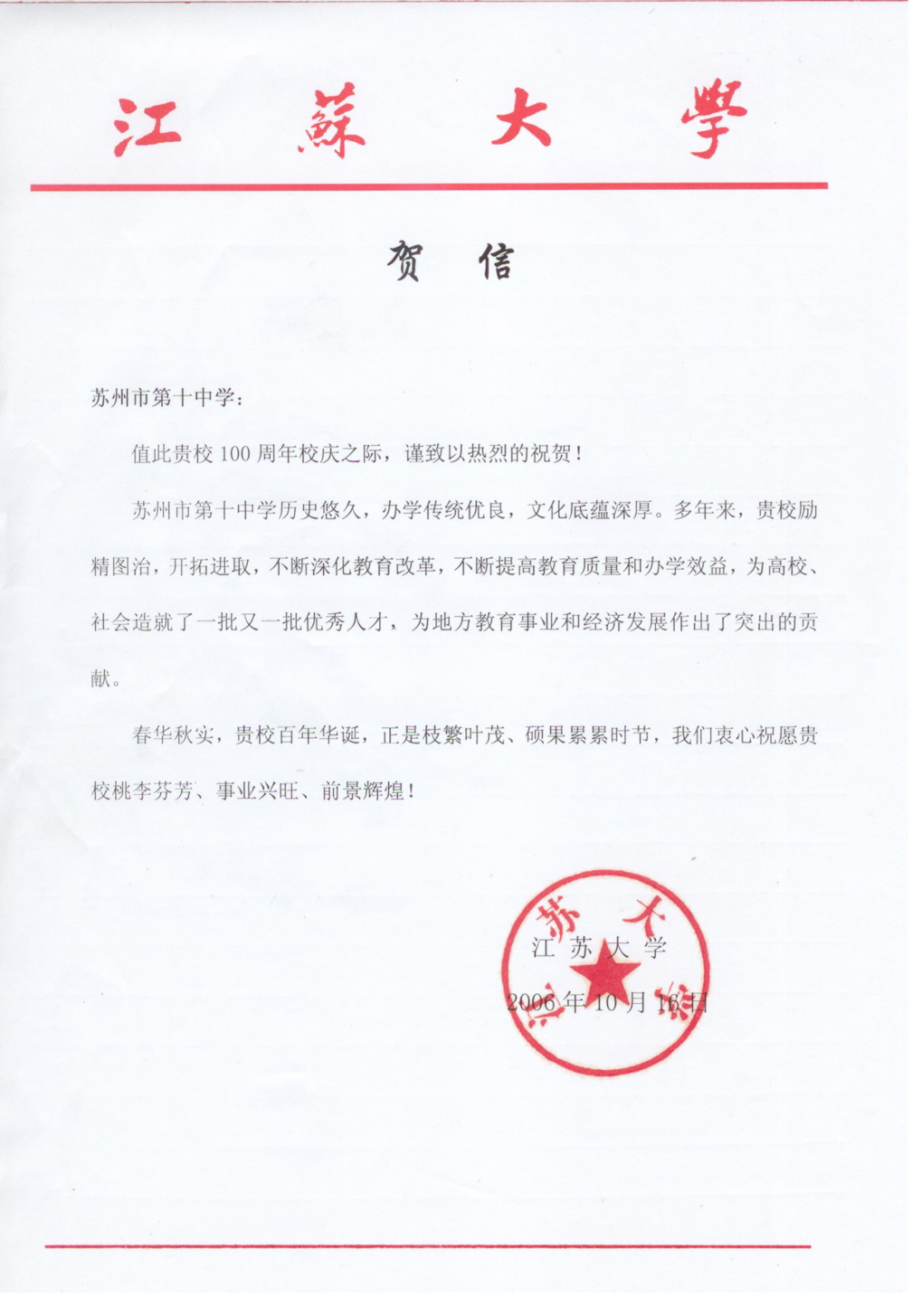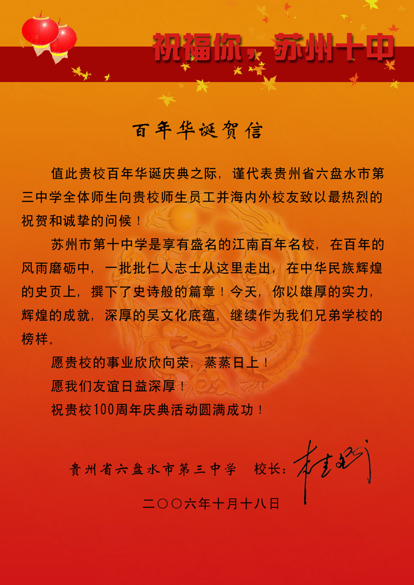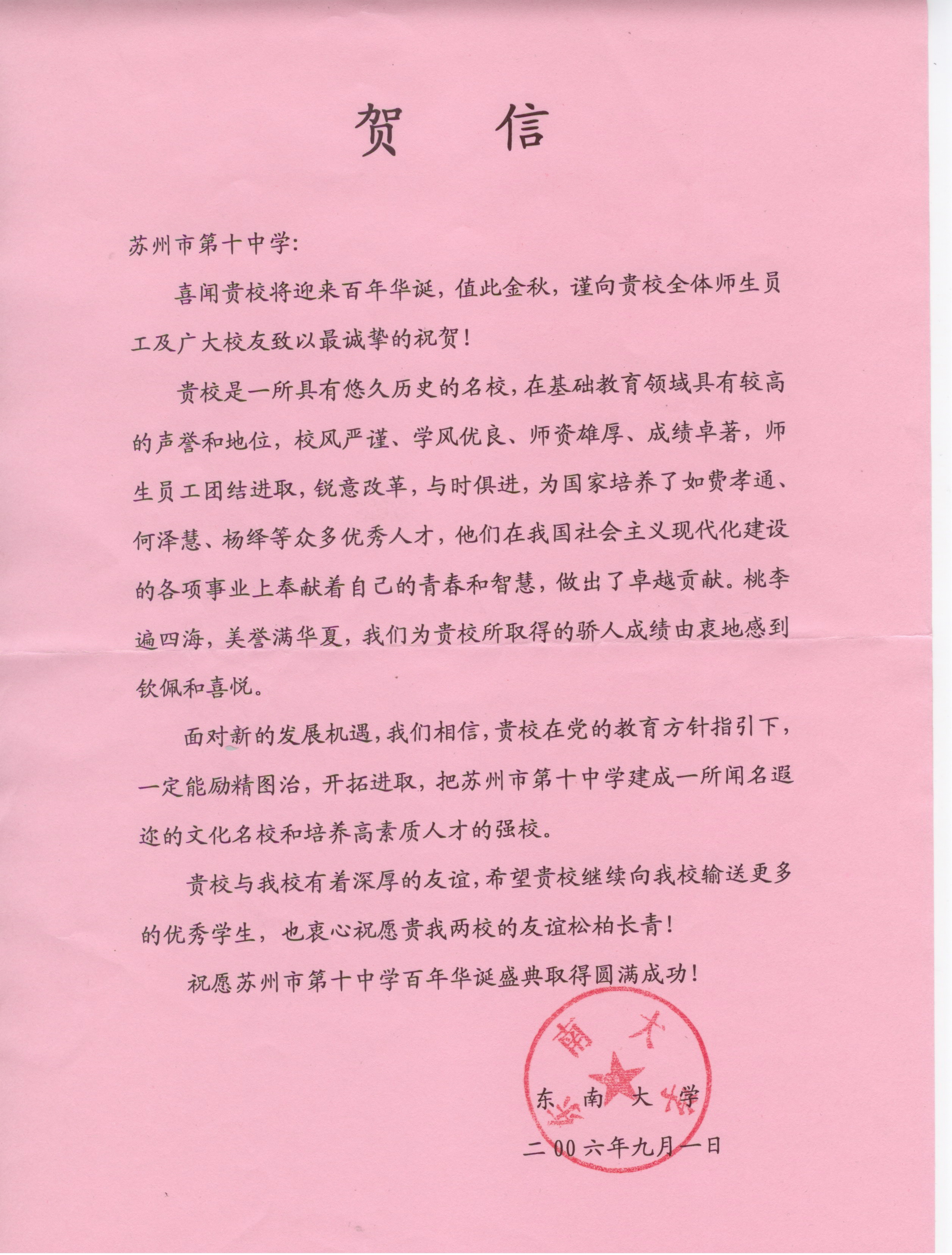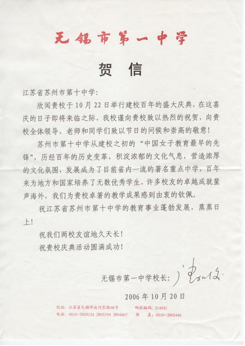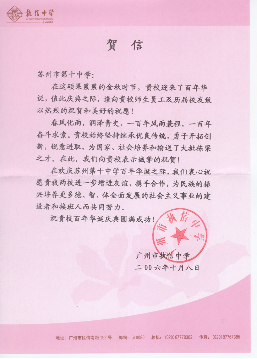 苏州寒山寺主持秋爽为学校百年校庆题词