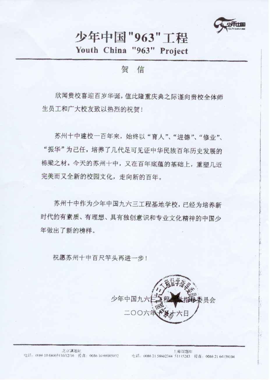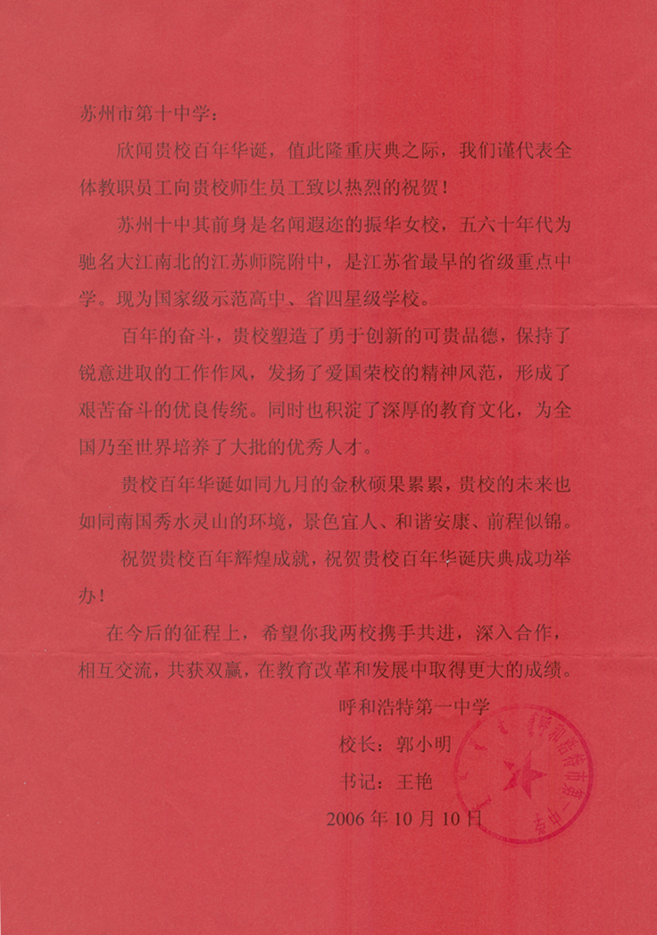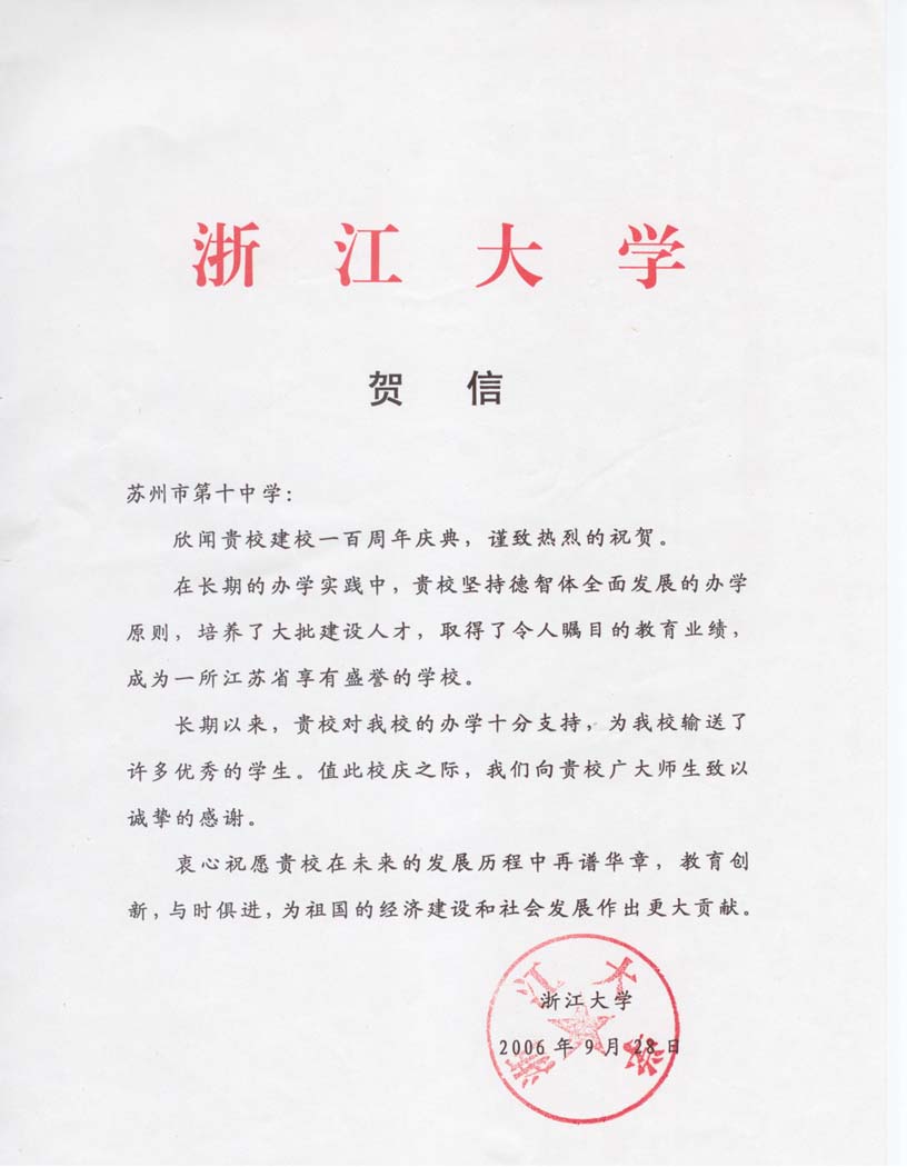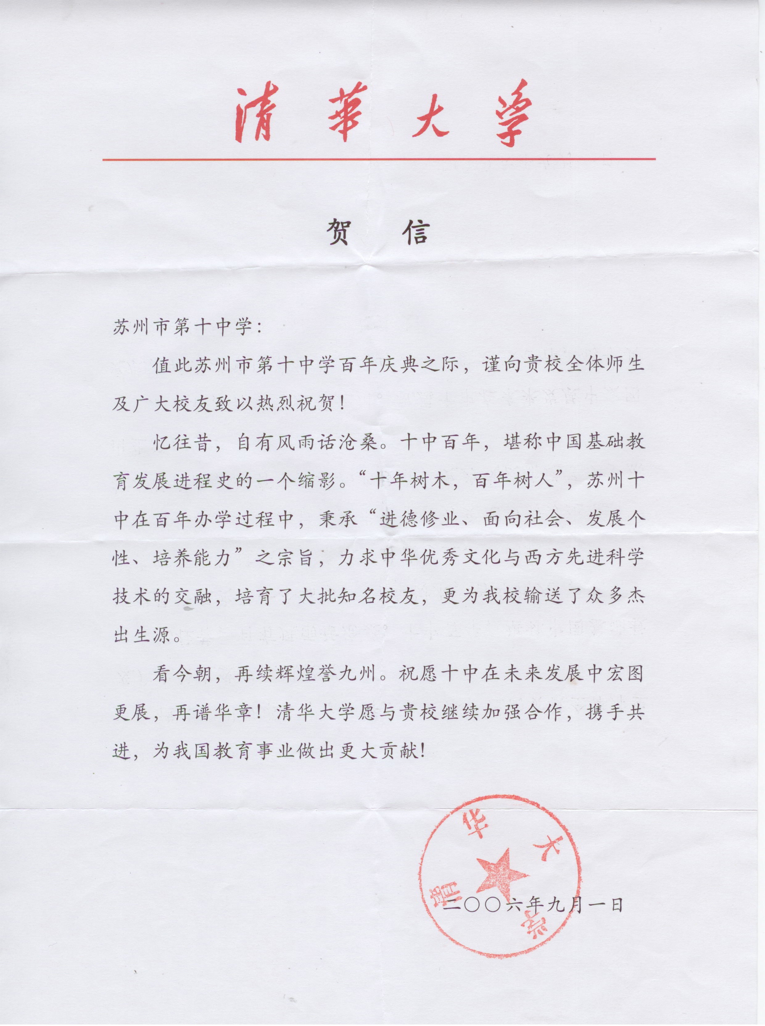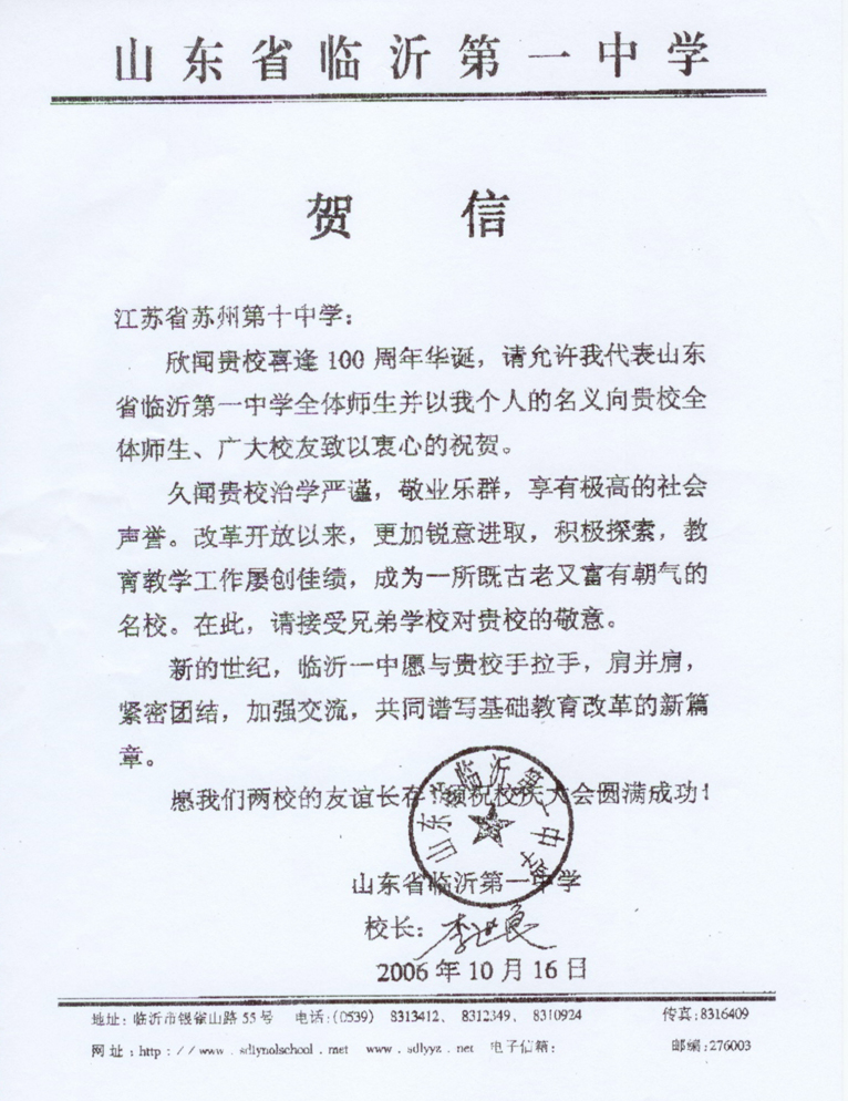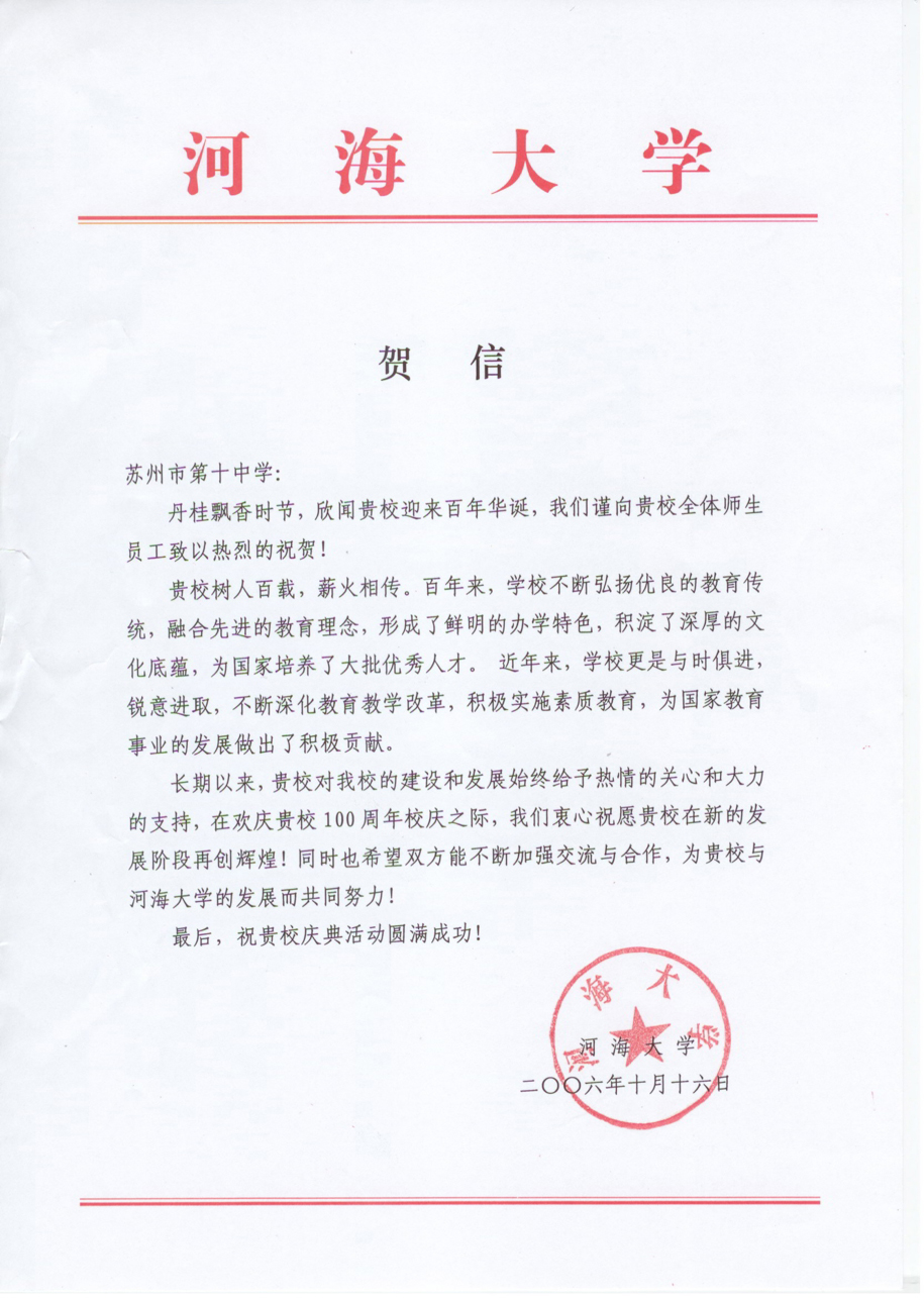 苏州寒山寺主持秋爽为学校百年校庆题词