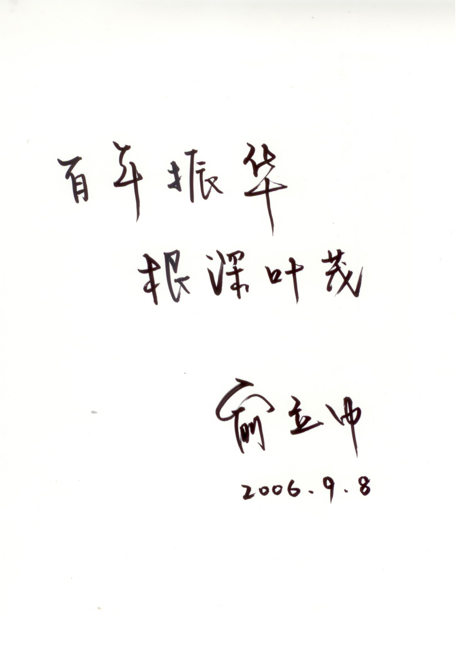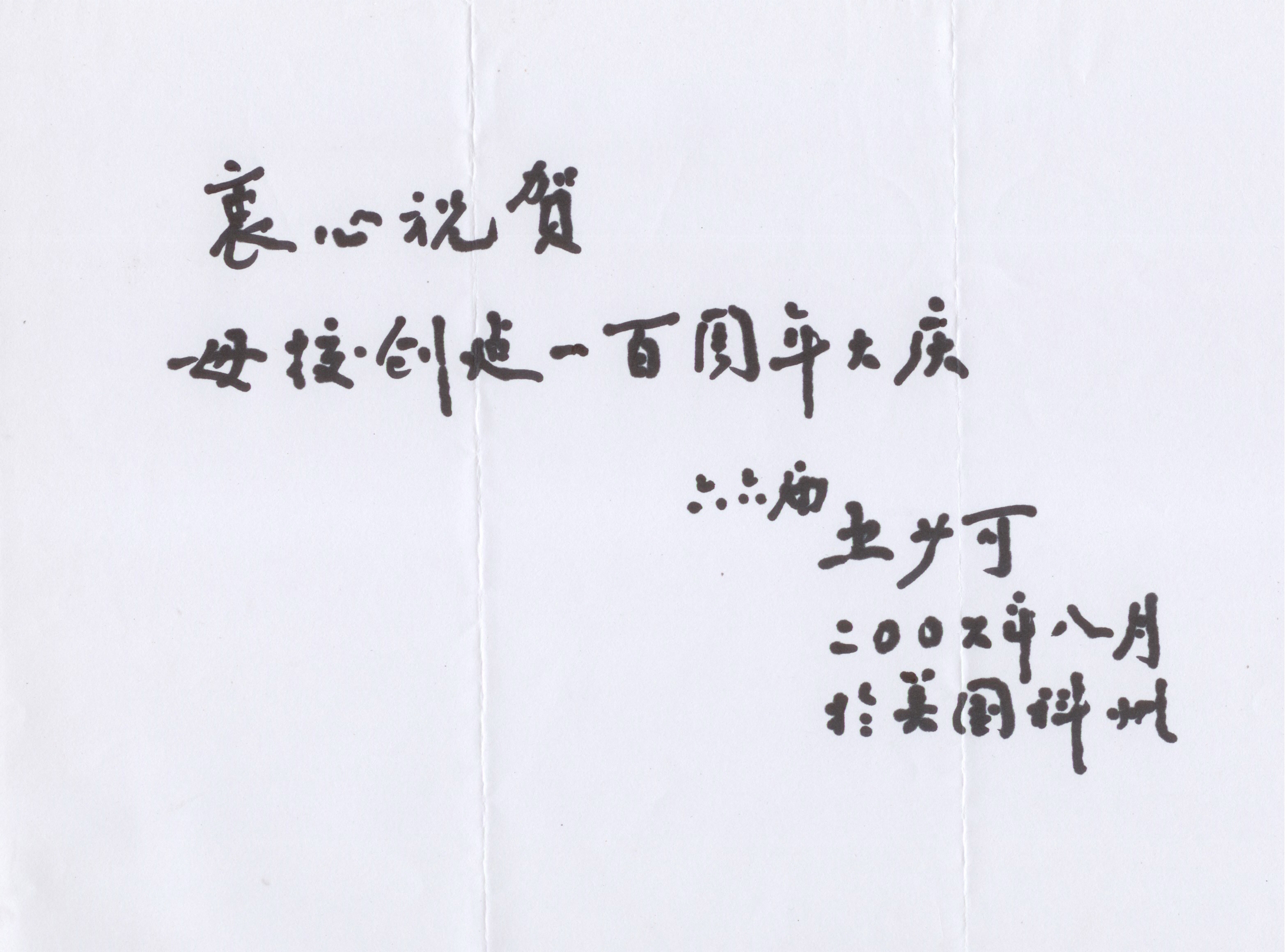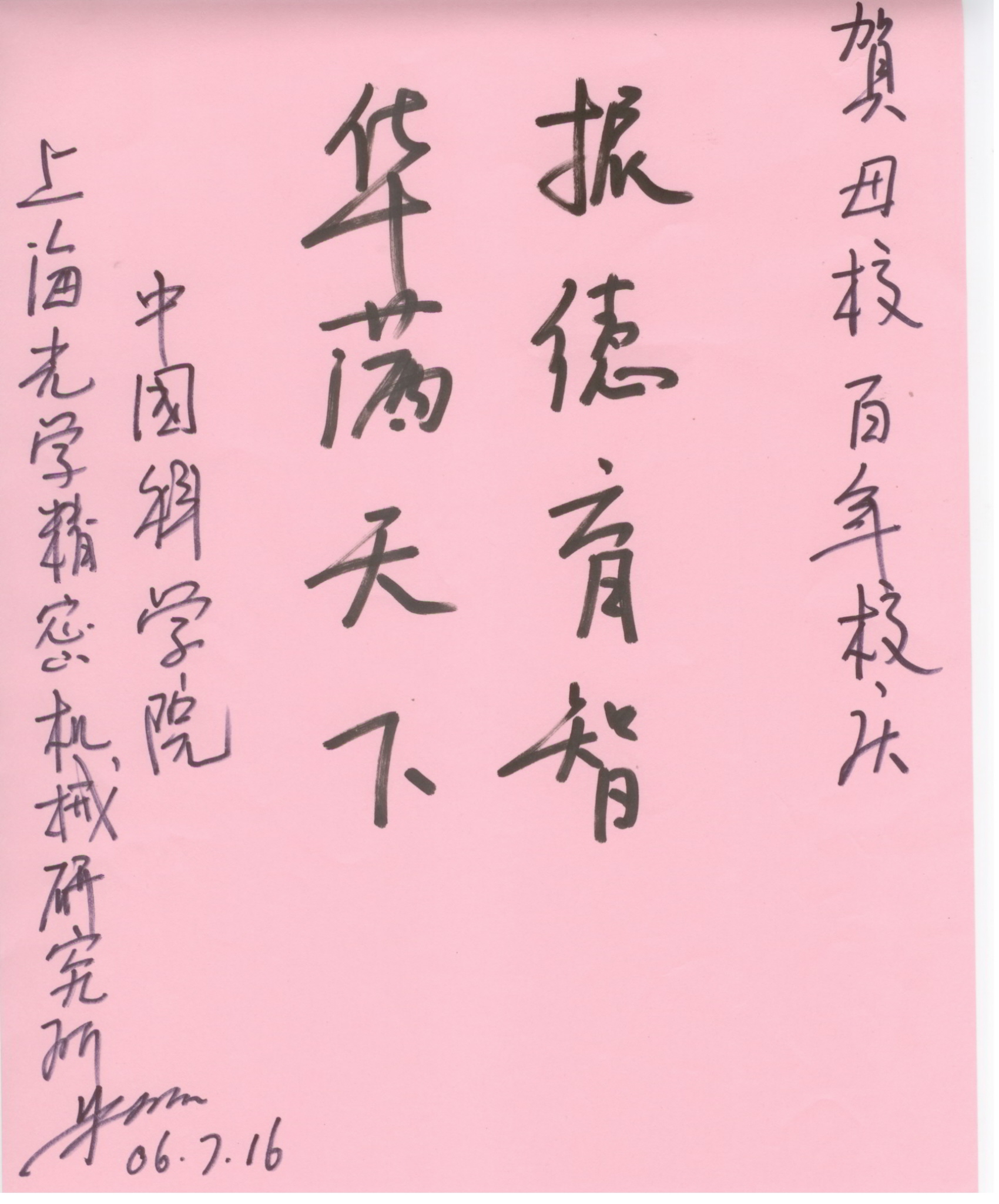 届校友美国贝尔实验室副总裁,现任俄亥俄州立大学州董事会杰出教授李大维的题词