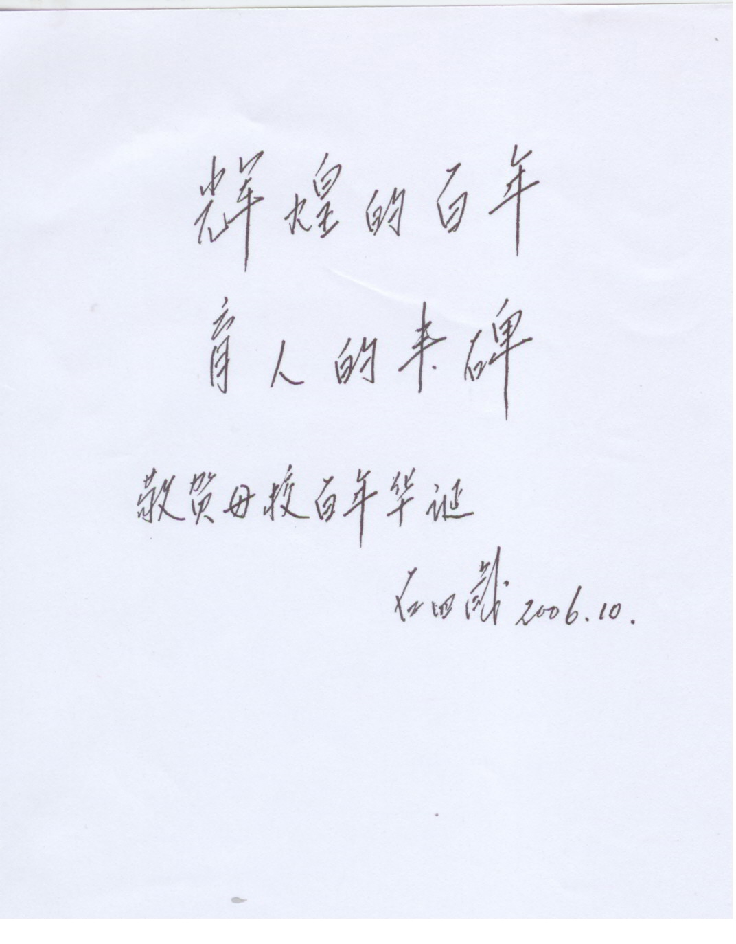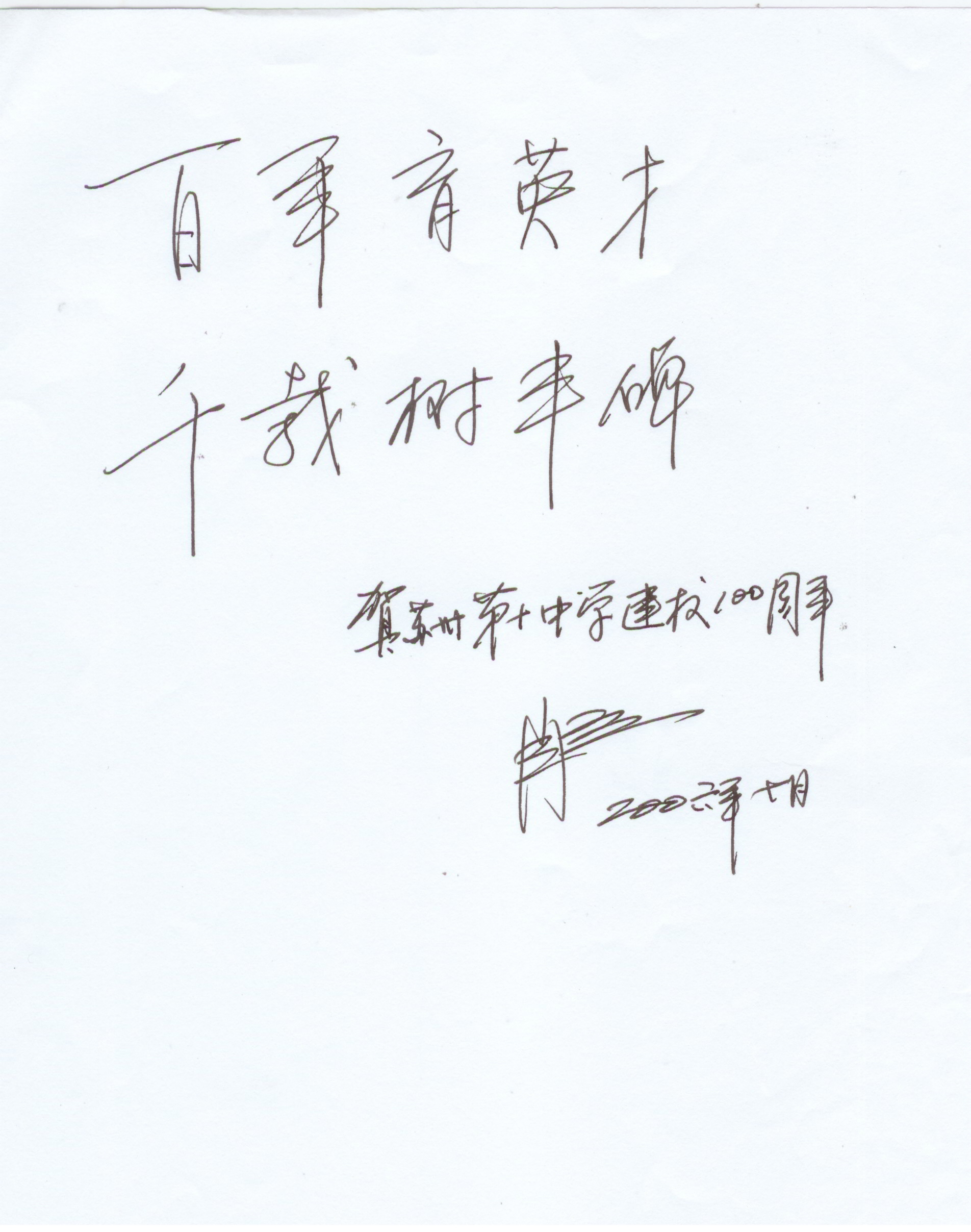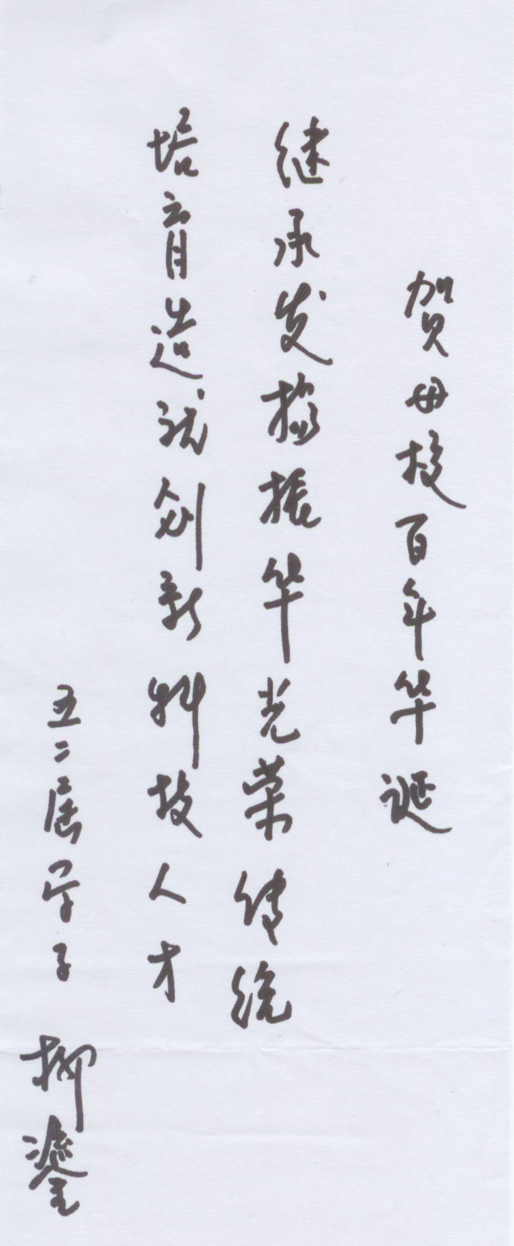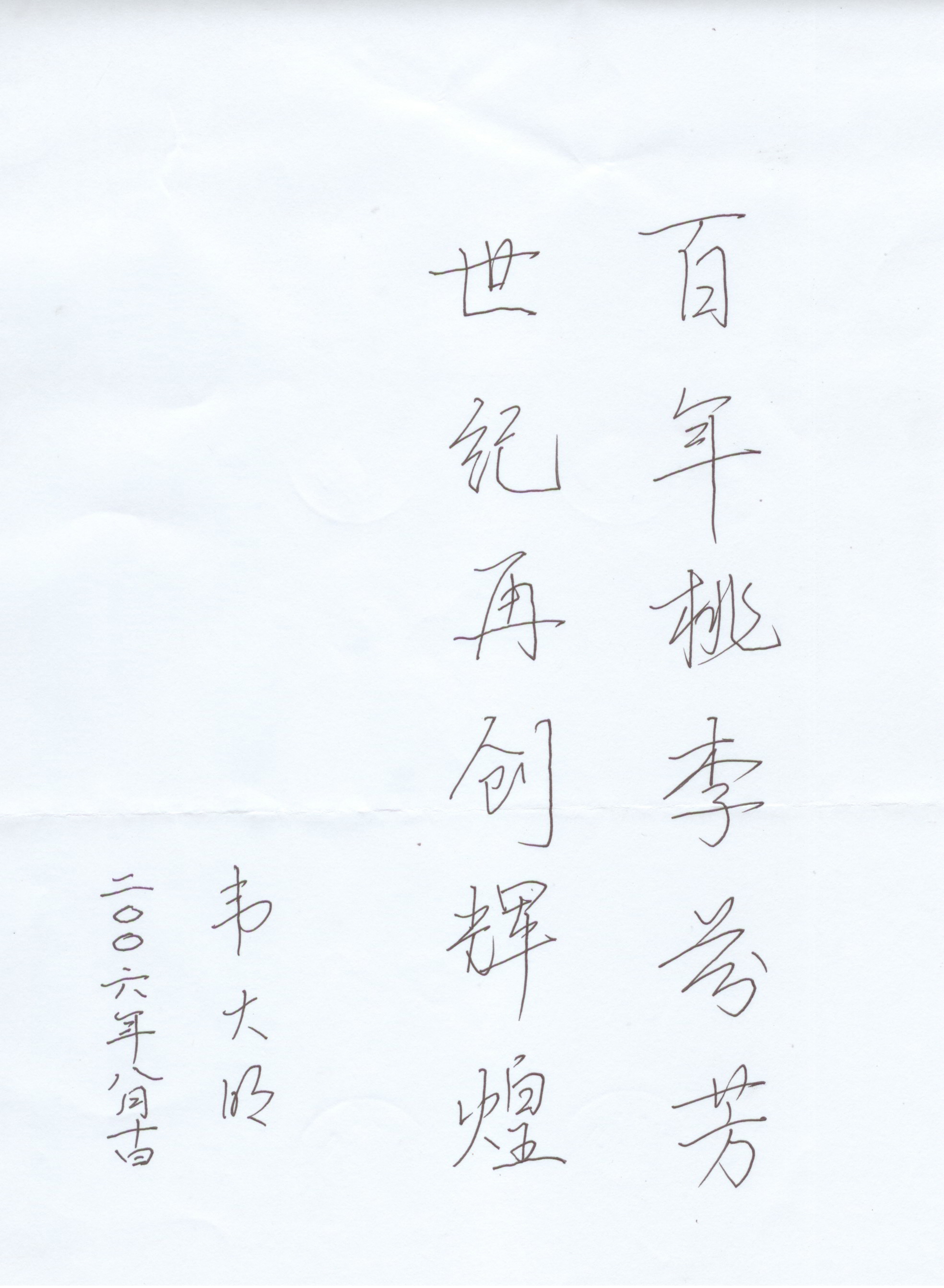 届校友美国贝尔实验室副总裁,现任俄亥俄州立大学州董事会杰出教授李大维的题词