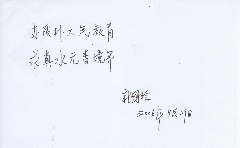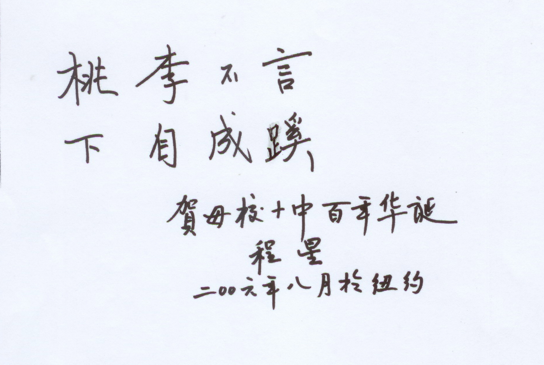 校友教育专家美国哥伦比亚大学本科生院副院长程星的题词