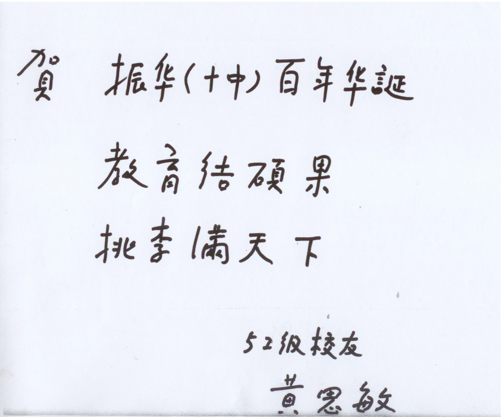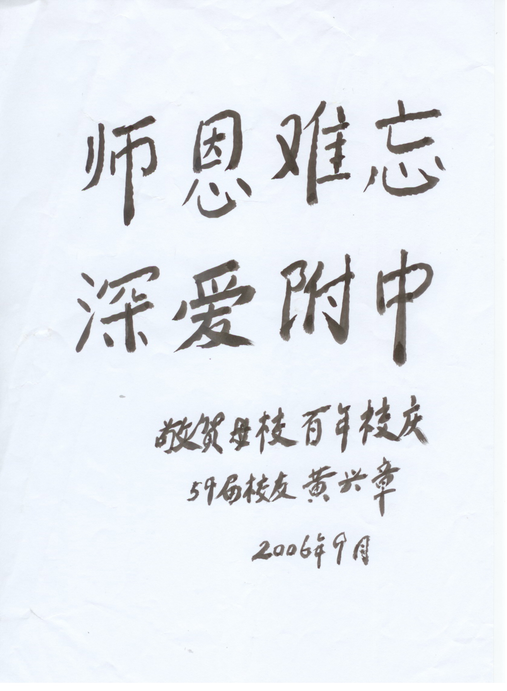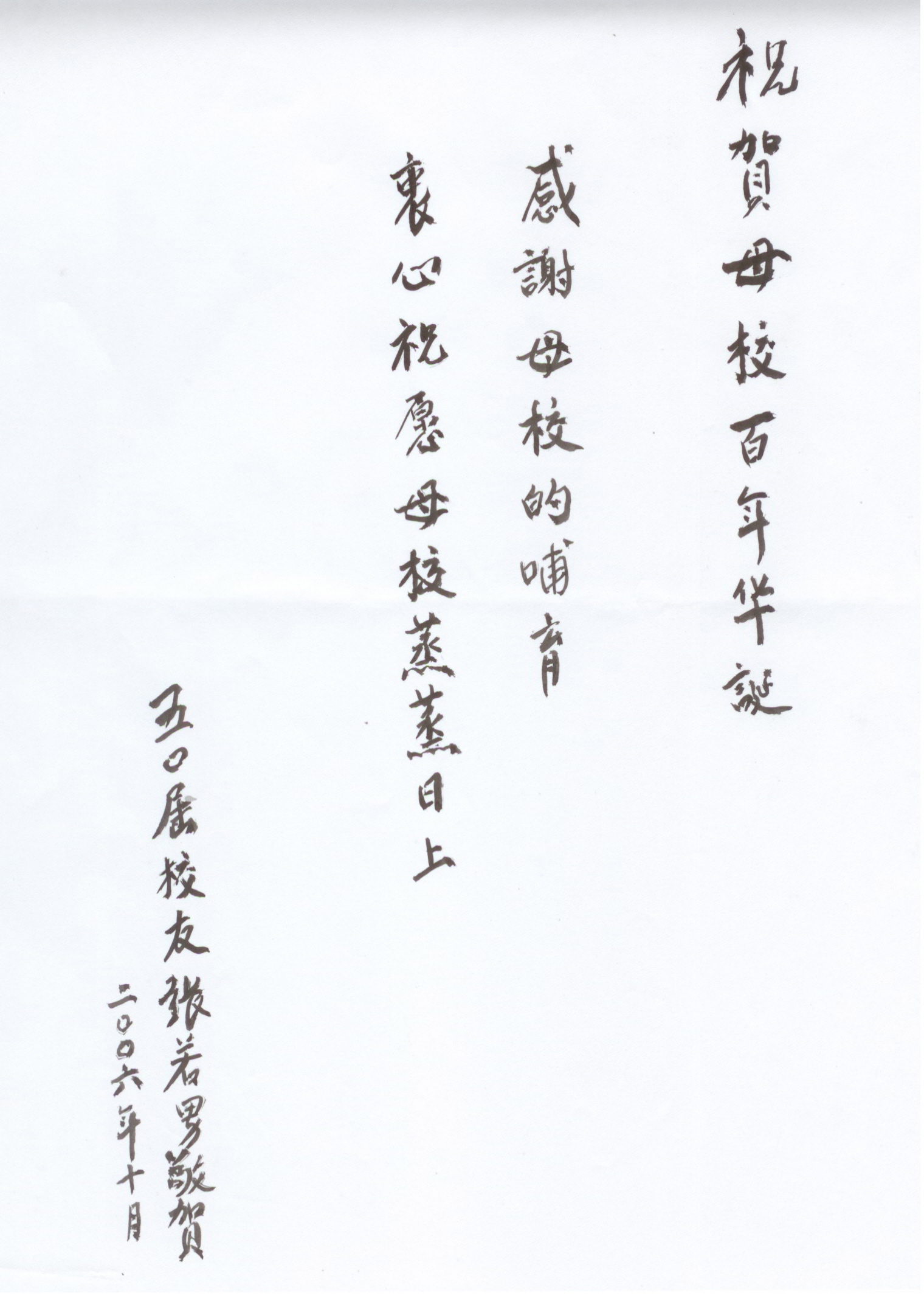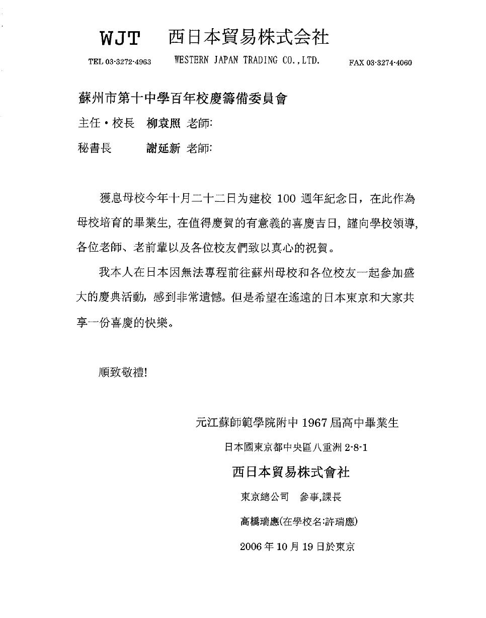 67屆高中畢業生高橋·瑞應(在校名許瑞應)的贺信