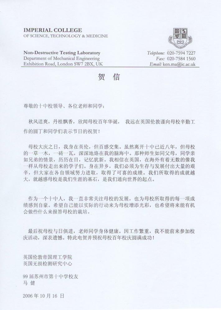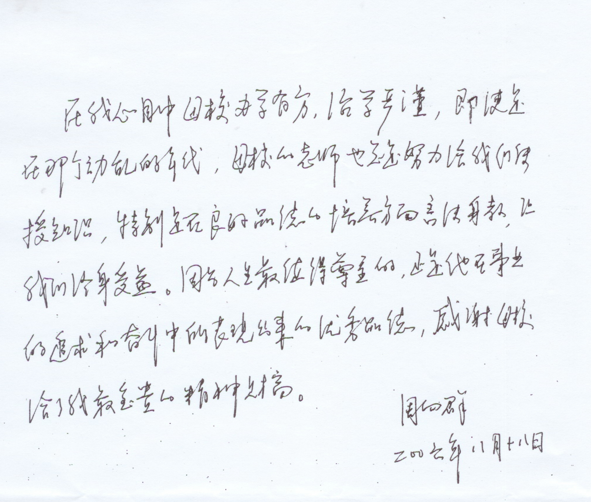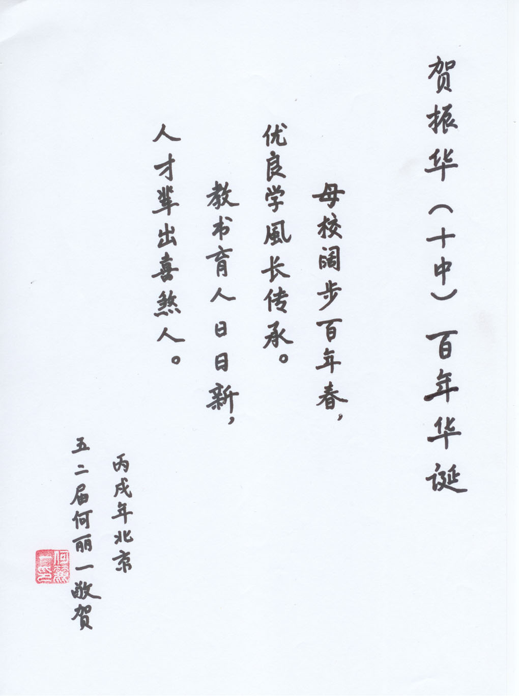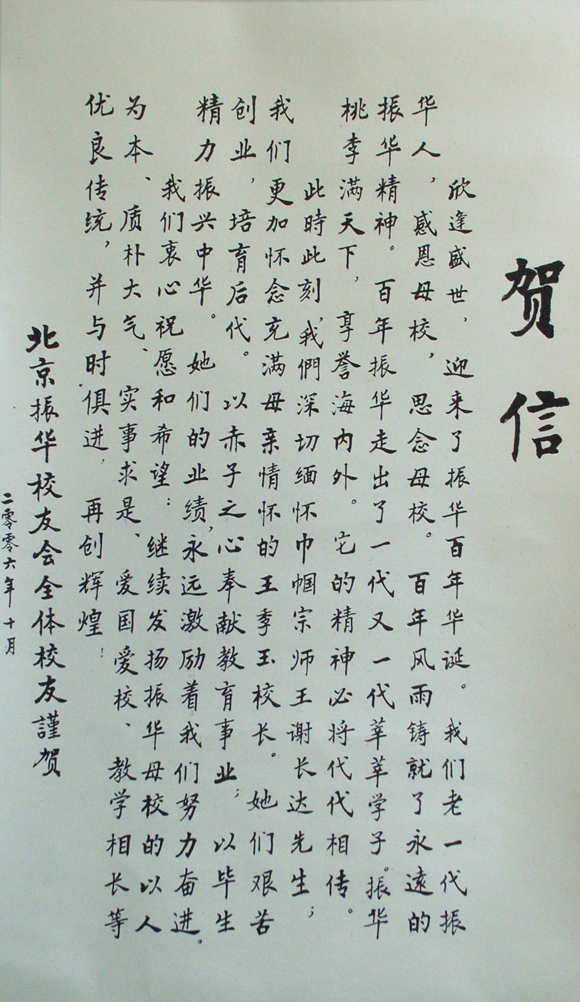 67屆高中畢業生高橋·瑞應(在校名許瑞應)的贺信