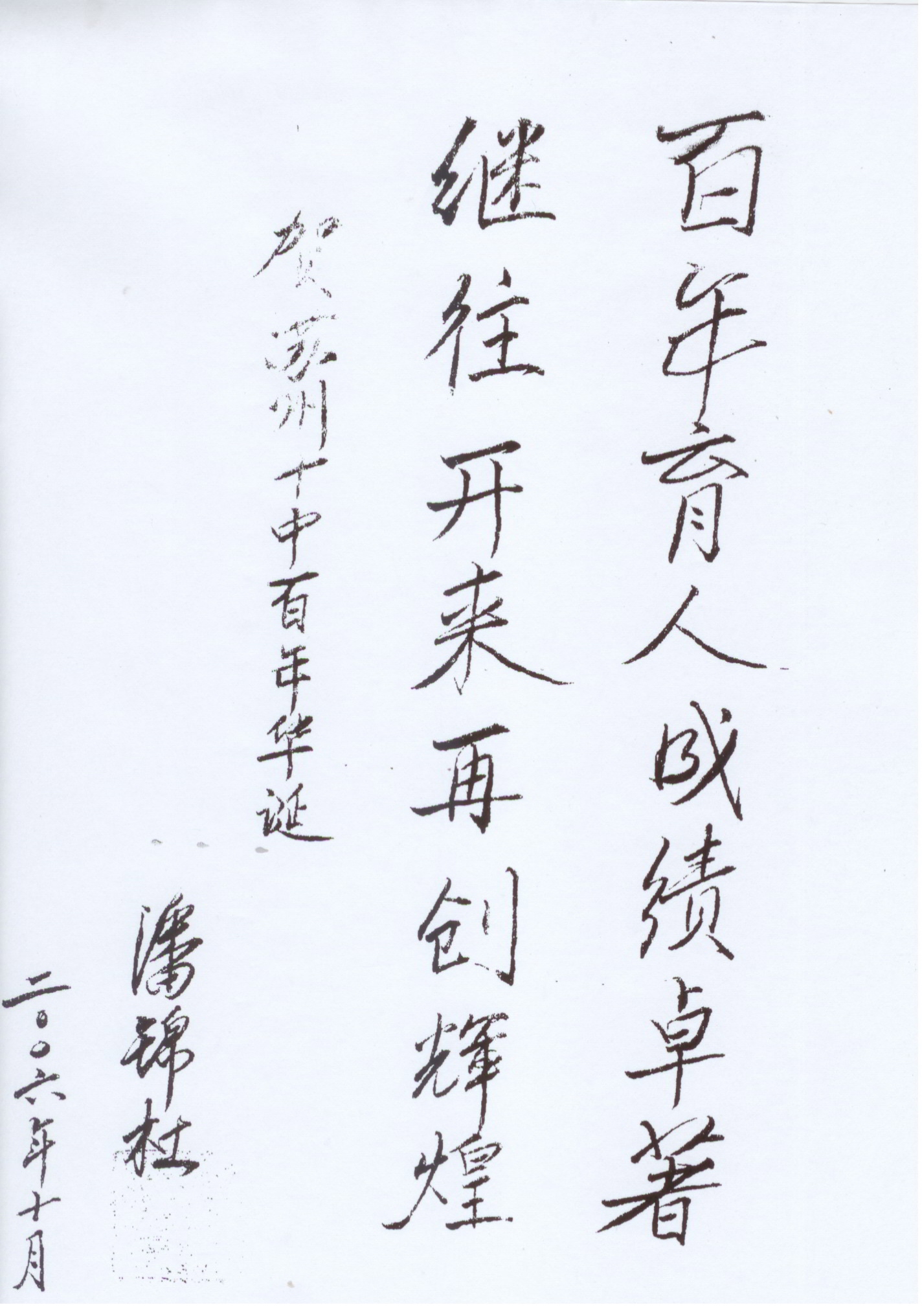 工农速中校友著名卫星遥感专家潘锦杜的题词