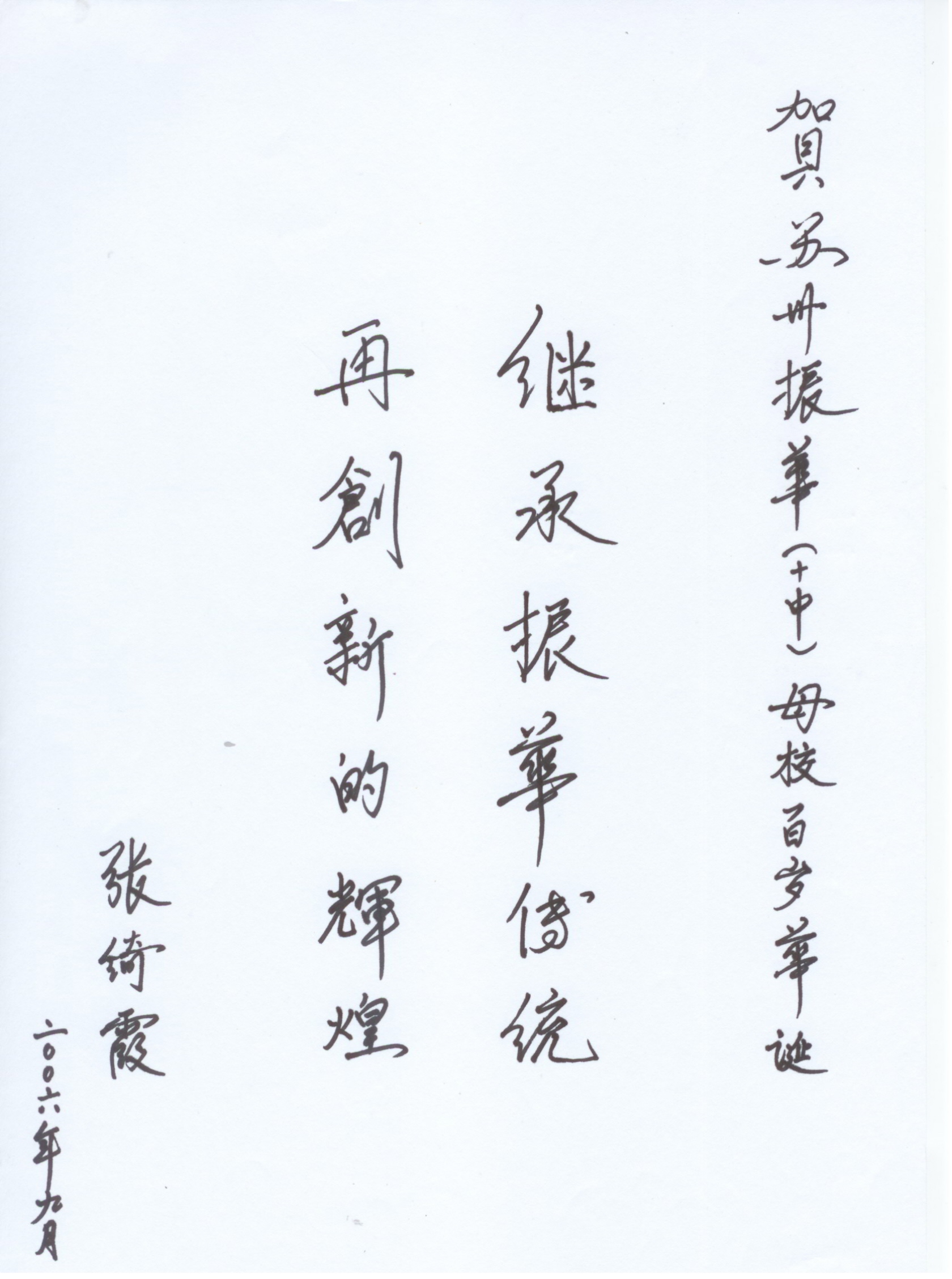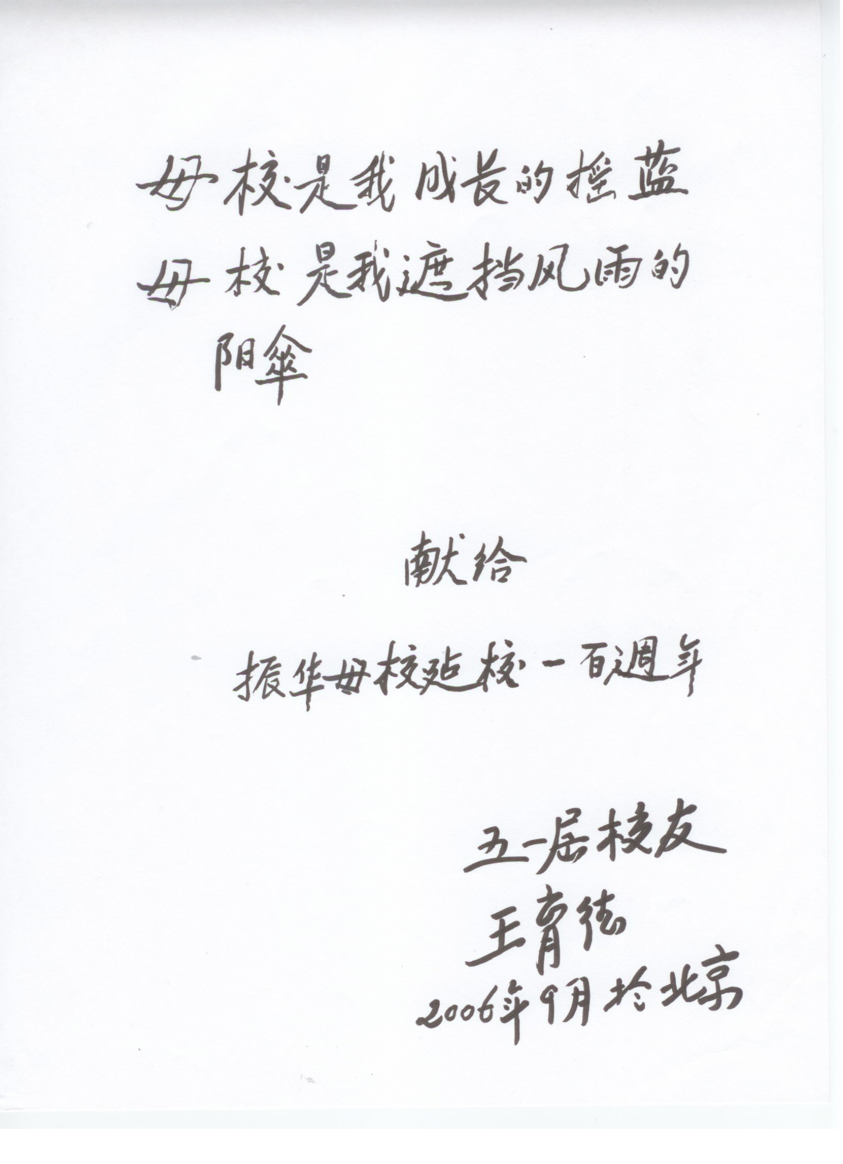 届校友蒋宪哲和蒋宪刚姐妹俩的题词
